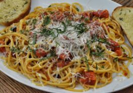 Indulge in the vibrant flavors of our Roasted Tomato Pappardelle with Garlic …