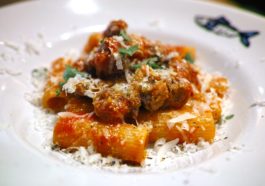 Riagatoni is paired with savory sausage, tomato puree, cheeses, and robust red …