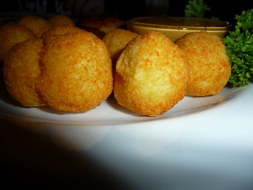 Roll each ball in the flour, then egg, and finally the bread crumbs until coated well. You can place bread crumbs in a bag and shake also, I find this is less messy fingers wise.