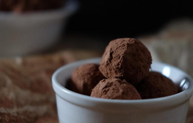 Shape into 1 inch balls and coat in cocoa powder (cocoa powder in a bag is easiest, just shake gently).