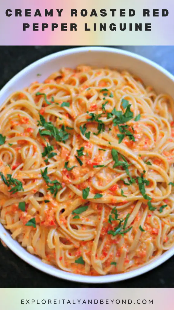 Indulge in a restaurant-quality meal at home with this Creamy Roasted Red Pepper Linguine! This elegant yet easy-to-make pasta dish features a luscious sauce crafted from sweet, smoky roasted red peppers, infused with garlic and fresh herbs, and blended with heavy cream or a dairy-free alternative for a silky smooth texture. Tossed with perfectly cooked linguine, it’s a vibrant and satisfying dish that’s perfect for a weeknight dinner or a special occasion. Garnish with fresh basil leaves and parmesan cheese for a finishing touch.