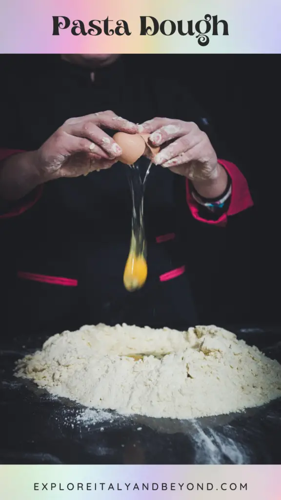 Mix the flour and then mound it in the center of a large wooden board or on your counter.