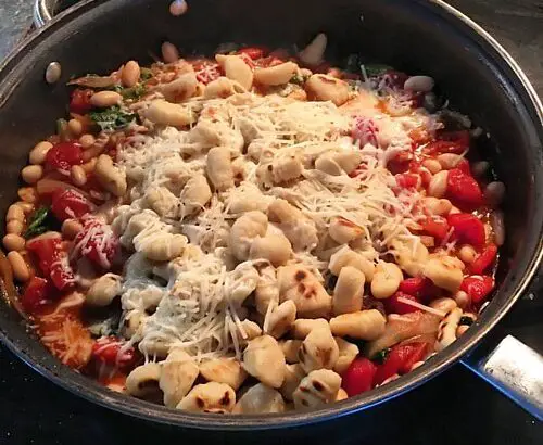 Simplify your dinner routine with this incredibly Easy Skillet Gnocchi with White Beans! This one-pan wonder combines shelf-stable gnocchi (no boiling required!) with hearty cannellini beans, diced tomatoes, and fresh spinach or chard. Seasoned simply with garlic, onion, and Italian herbs, it’s cooked to perfection and finished with a sprinkle of Parmesan cheese. A flavorful, comforting meal ready in under 30 minutes, with minimal cleanup – perfect for busy evenings.