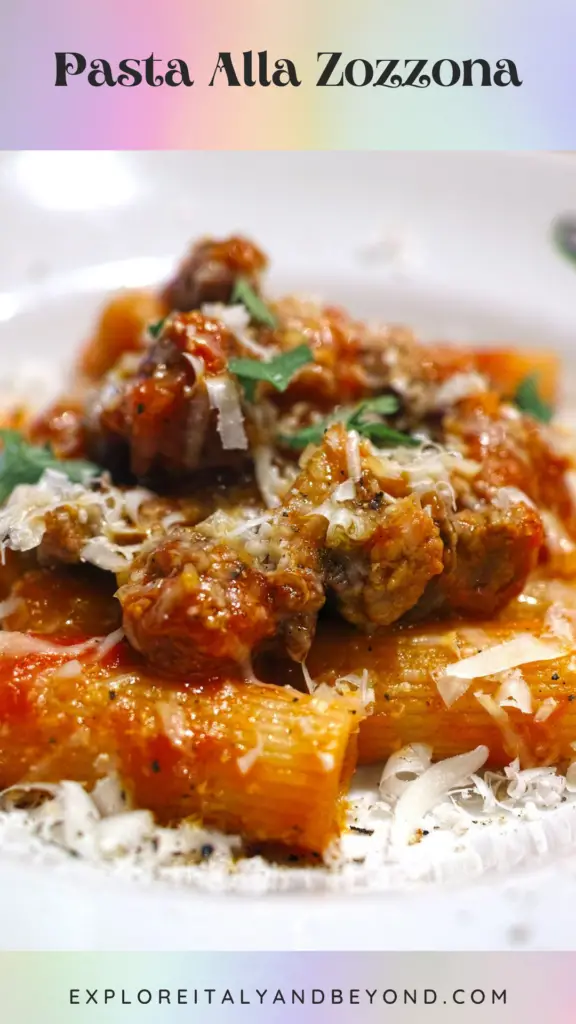 Riagatoni is paired with savory sausage, tomato puree, cheeses, and robust red wine to make a hearty, flavorful dish that is sure to please. The combination of the ingredients creates a robust and flavorful experience that will tantalize your taste buds. The sausage is cooked in a rich red wine sauce that adds depth and complexity to the dish. The pasta is cooked al dente, providing a tender texture that stands up to the rich sauce. Parmesan and pecorino cheeses add an extra layer of flavor that brings the dish together. This is an easy to prepare dish that is sure to satisfy any craving. Enjoy!