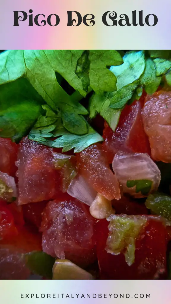 Pico de gallo, also known as salsa fresca, is a delicious Mexican condiment and side dish. It is a fresh, uncooked salsa made with a combination of tomatoes, onions, chilies, cilantro, lime juice, and salt. It is usually served as a condiment for tacos or burritos, but can also be enjoyed as a side dish with chips or as a topping for grilled meats and fish. The flavors of the ingredients combine to create a light, fresh, and slightly spicy flavor. Pico de gallo is a great addition to any Mexican meal and is sure to be a hit with your guests.