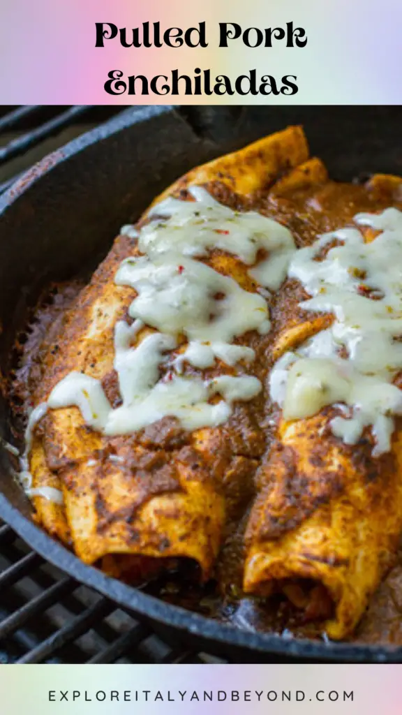 To make pulled pork enchiladas even more indulgent, they are typically topped with melted cheese. The cheese adds a creamy and gooey texture to the dish, as well as a hint of saltiness that balances out the spices in the enchilada sauce. The cheese also forms a delicious crust as it bakes, adding a satisfying crunch to every bite. Whether enjoyed as a main course or as a crowd-pleasing appetizer, pulled pork enchiladas are a delicious and comforting dish that brings together the best of Mexican cuisine.