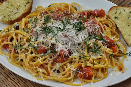 Cook pasta according to directions, to match when tomatoes will be finished.