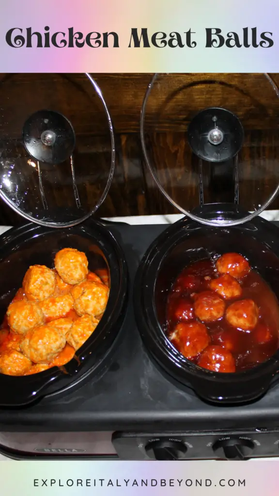 Note: The picture shows buffalo chicken meatballs on ends, and BBQ in the middle.