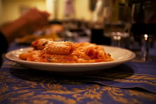 Cook rigatoni according to directions, drain pasta reserving 1/2 pasta water.