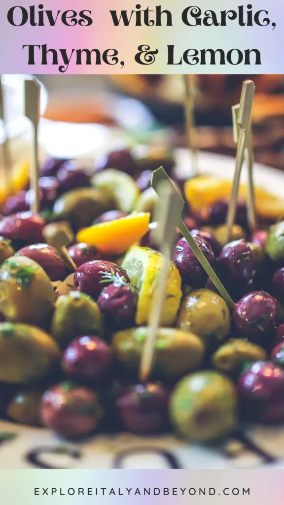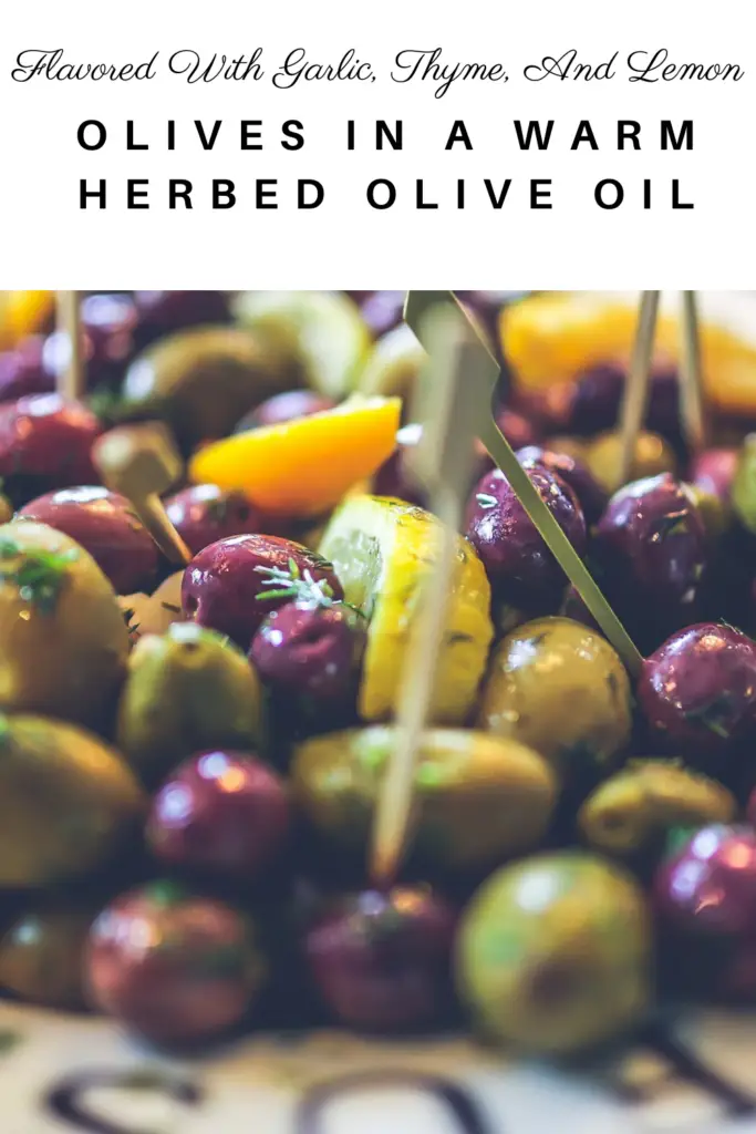 This dish is a delicious combination of warm olives, garlic, thyme, and lemon. The olives are slowly simmered in a combination of garlic, thyme, and lemon zest for a flavorful and comforting dish. It is perfect for snacking, as a side dish, or as an appetizer. The olives are cooked until they are tender and lightly browned, and the garlic and thyme impart a wonderful aroma and flavor. The lemon zest adds a bright acidic note that balances out the dish perfectly. Serve with crusty bread or crackers and enjoy the amazing flavors of this simple yet delicious dish.
